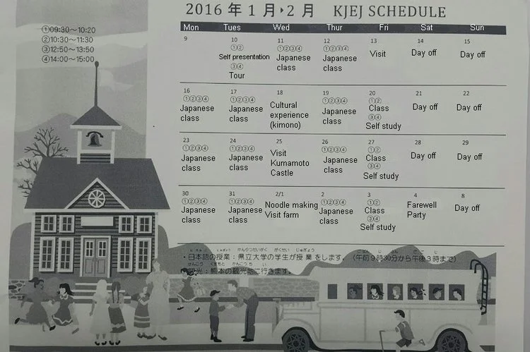 - Le participant aura des cours intensifs de Japonais le matin et des visites d'entreprises à Kumamoto ainsi que des sessions de briefing dans l’après midi.