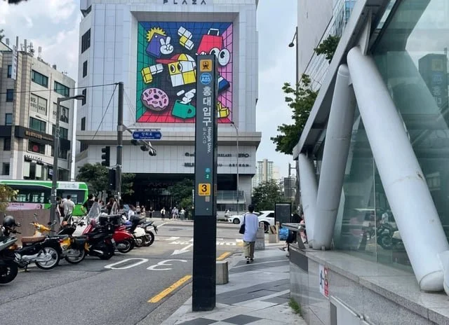 Hongik Univ. Station Exit 3: The Incheon Airport Railroad stops here.