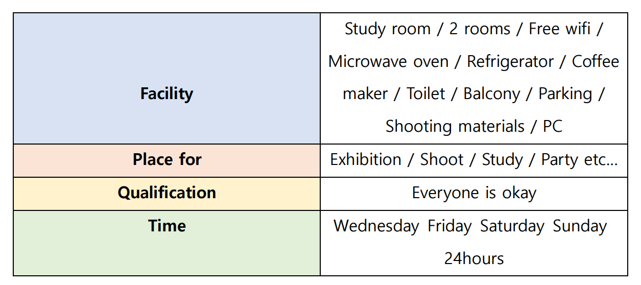 If you don’t have the space to study, do party, shoot something and etc… why don’t you use our rental room!